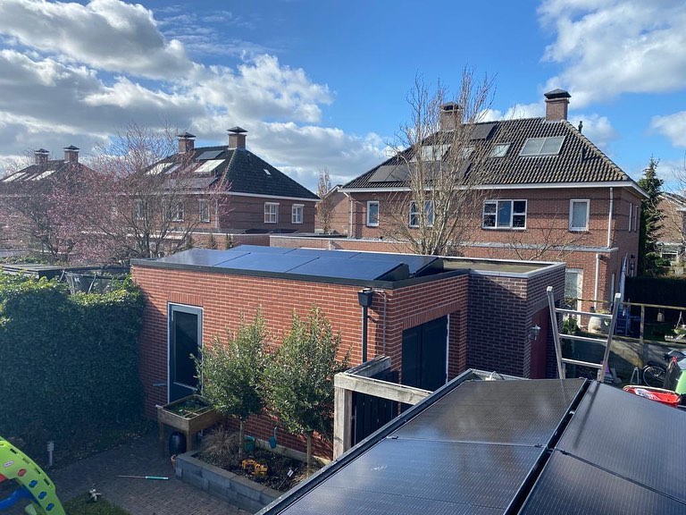 Deze klant blij gemaakt met 15 zonnepanelen met micro-omvormers Enphase. Mooi platdaksysteem flatfix-fusion van Esdec, oost-west en zuid. Ideale daken om Enphase te gebruiken: verschillende dakvlakken en legrichtingen.Traditonele omvormers genereren minder stroom voor het hele systeem wanneer er een paneel in de schaduw komt te liggen. Omdat de micro-omvormers van Enphase los van elkaar werken behaal je ten alle tijde de uiterste capaciteit.