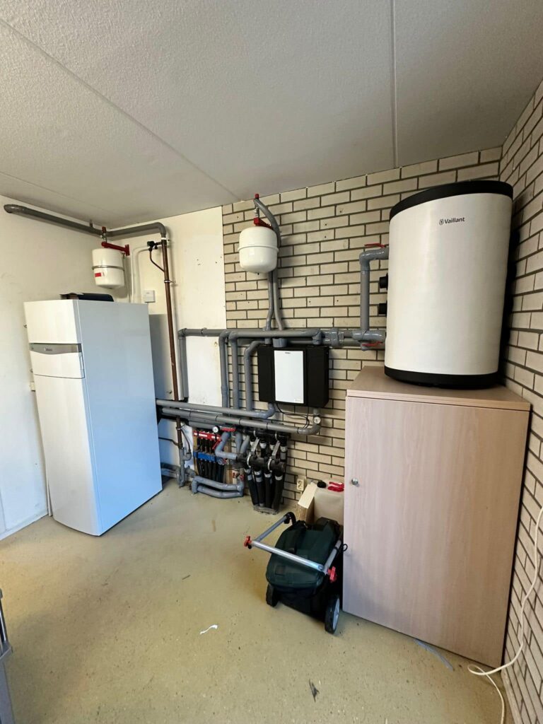 Weer een Vaillant warmtepomp geplaatst door de mannen in combinatie met vloerverwarming en op de verdieping zijn warmtepompradiatoren toegepast.
