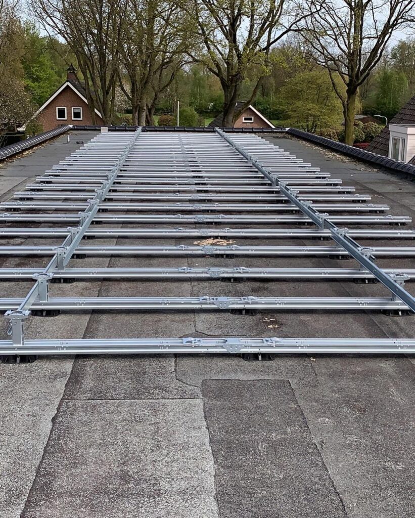 Deze ondernemer voorzien van een mooie set projectpanelen 410Wp met een flat-fix wave plus systeem, dat wil zeggen: gereedschapsloze montage van de zonnepanelen.