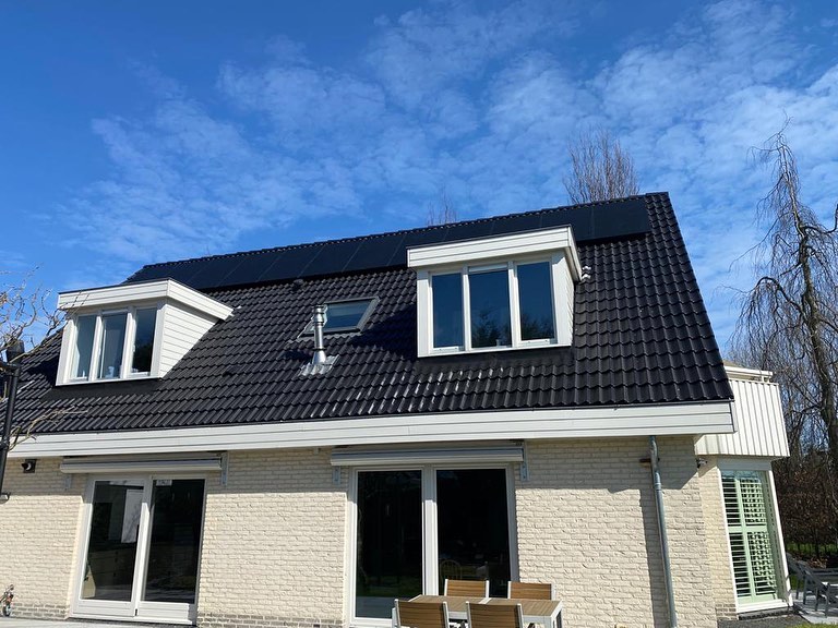 24 zonnepanelen oost-west met Enphase, wat wil zeggen dat ieder paneel z’n eigen micro-omvormer heeft, dit uitgebreid met het metered systeem: klaar voor batterij stroomopslag.