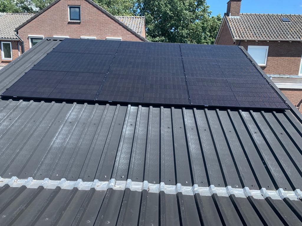 15 full-black 400Wp zonnepanelen op een stalen dak te Hollandscheveld.