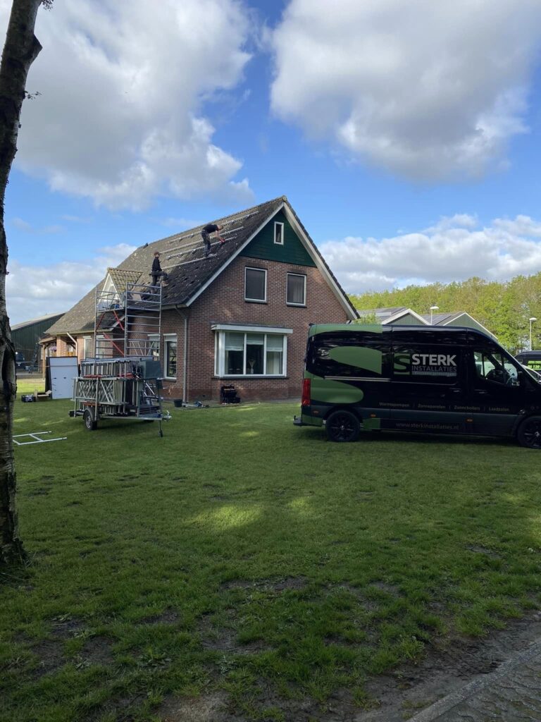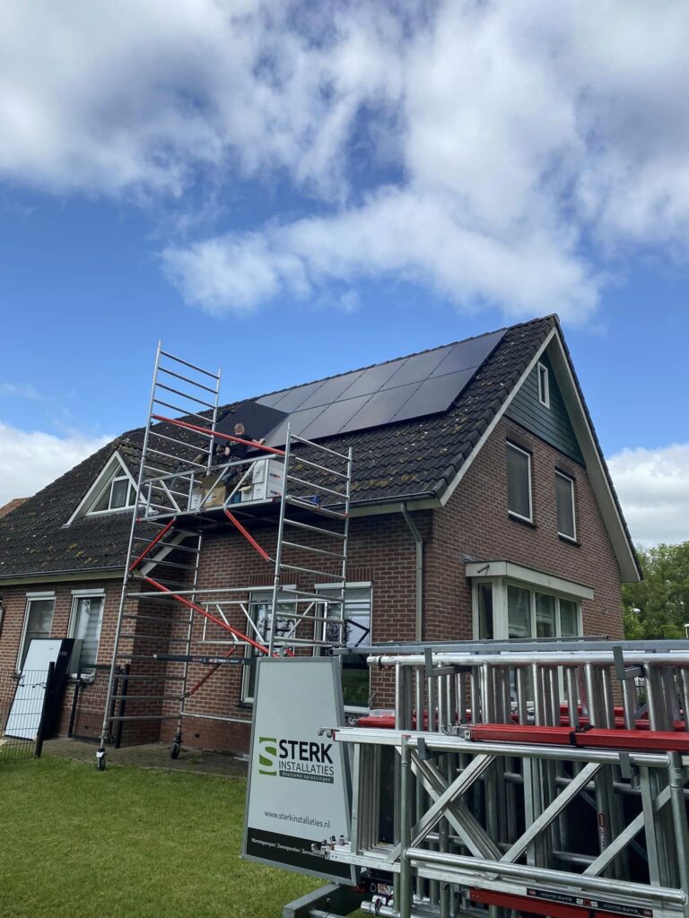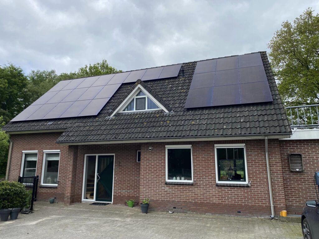In Geesbrug zitten de 46 zonnepanelen er ook op! 46x 400Wp = 18400Wp. Jaarlijks goed voor ongeveer 15500kW.