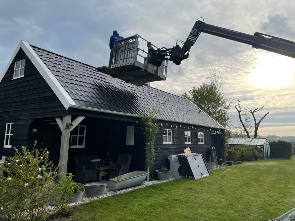 12 zonnepanelen op een stalen dakpanplaat gemonteerd op montagerails van esdec.